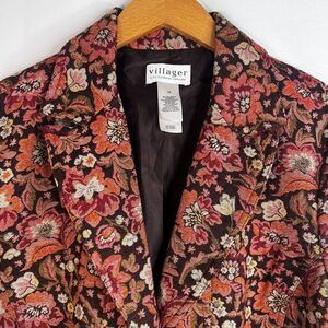Villager by Liz Claiborne Floral Print Tapestry Single Breasted Blazer Size 16