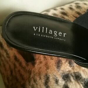 Slip in Shoe with Side Buckle. Black Leather with 2" Stacked Heel. 8B.