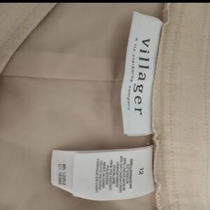 Villager a liz claiborne co Linen Cream Wide Legs Full Length Zipper women's Pants