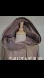 The cloak is iridescent; It's tan with tones of blue at every turn. The hood and coat are big and wide enough to cover your entire head and body.