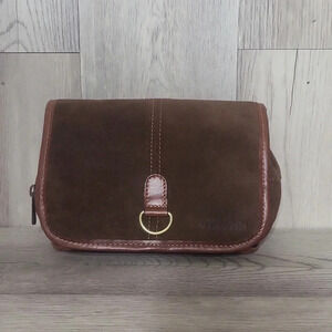 Villena Brown Suede Multi Pocket Hanging Foldable Toiletry Bag