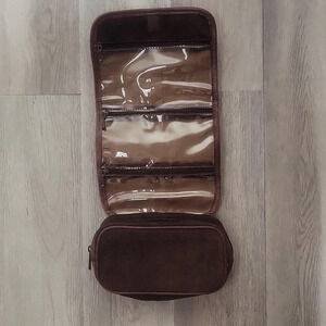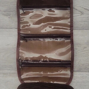🛍Villena Brown Suede Multi Pocket Hanging Foldable Toiletry Bag