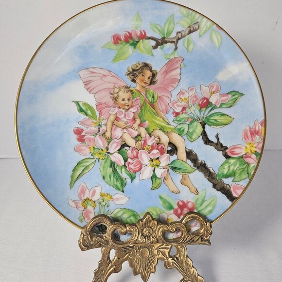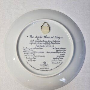 A beautiful, vintage The Apple Blossom Fairy porcelain collectors plate with gold rim. Made by Heinrich Germany Villeroy and Boch. The design of this plate is inspired by the works of Cicely Mary Barker. The plate is 6th issue in the Flower Fairy Collection. Plate number 5622. Back of plate has a tab with a plate hangar making this beauty ready to hang on a wall or set it on a table top. Measures 7.75. inches. Plate stand not included. Vintage plate is pre owned and is free of any damage on the front side. On the backside, It is noted that there is some light scratches on the word Heinrich and Boch. See my pictures of this with pen pointing it out. Pricing reflects this little flaw. Non smoking pet free home.