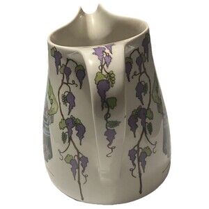 The Villeroy & Boch 20 oz pitcher design 1900 is a vintage piece made of porcelain, standing at 4.5 inches tall. With a colorful pattern created in the year 1900, this pitcher is a unique and decorative addition to any collection of dinnerware or serving ware. This elegant pitcher is perfect for serving beverages or as a stylish decorative piece in a home, bringing a touch of history and charm to any space.