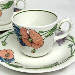 Villeroy & Boch Amapola Set Of 3 Tea Cups & Saucers Vitro Porcelain Floral