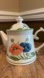 Beautiful teapot with large blue & orange colorful poppies.