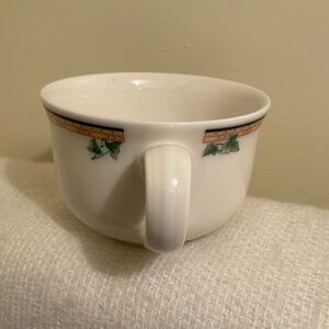 Tea cup replacement piece only…no saucer. White cup with beautiful, delicate floral detailing along the top of the cup. Glossy finish.