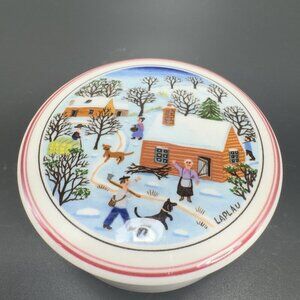 Villeroy & Boch Naif Christmas Round Trinket Box Jewelry Container Porcelain VTG
