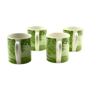 Villeroy Boch Parkland Toile Mugs Set f 4 Green Trees with White Interior VGC Discontinued