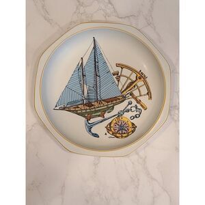 Villeroy & Boch Plate Nautical Sports et Loisirs Porcelain Octagonal 8"x 1.¼" | Excellent Used Condition | No chips or cracks | Please refer to the photos for the condition | Artist signature is visible | Weight before packaging 1 pound