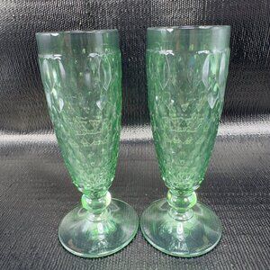 Villeroy and Boch Boston Green Footed Champagne Glasses Cups Barware Set2 Signed