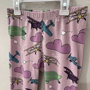 Villervalla leggings size 134 (9). Purple background with clouds and kites featuring airplanes and blimps! So cute and whimsical. Very good condition.