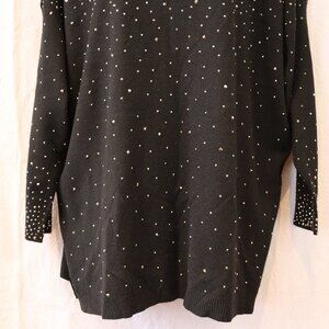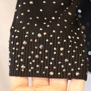 Style: Black long sleeve 90s vintage sweater with metallic gems, boat neckline