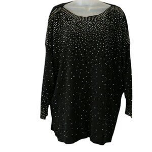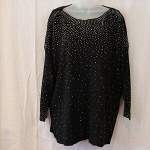 Vilo Milano Plus Size 1X Black Sparkly 90s Vintage Knit Sweater Metallic Gems