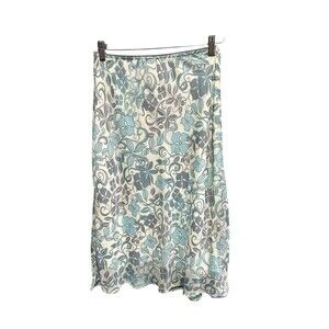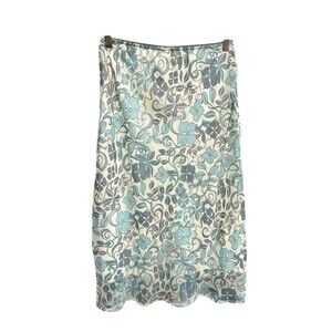 Vinage Conneted Skirt Blue Foral Knee Length 90s Y2K Elastic Waist Midi Fairycor