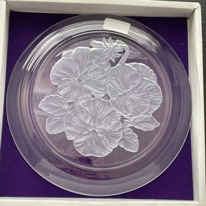 Signed by Artist Vinardi Handcrafted Lead Crystal Pansy Flower Plate T. Yamamoto