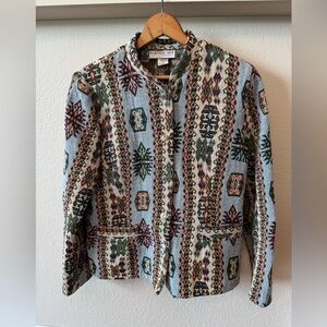 Vinatge 90's Bedford Fair Lifestyles Aztec Inspired Tapestry Jacket Size 16