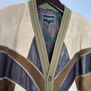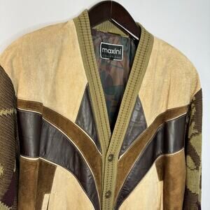 Vinatge 90’s Maxini Cosby Arsenio Hall Leather Suede Patchwork Cardigan Jacket