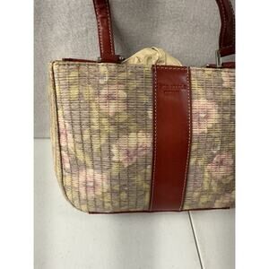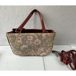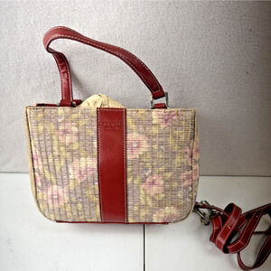 Vinatge Kate Spade Woven Straw Small Tote Bad Floral Red accents