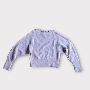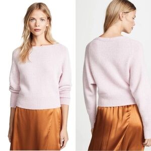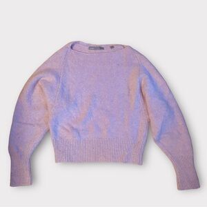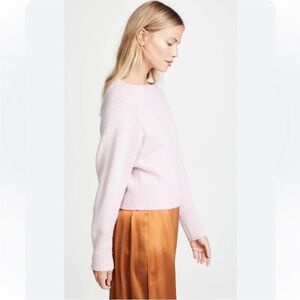 NOTES: Vince cashmere crop sweater. This boatneck features a cropped silhouette in tactile, ultra-soft Donegal cashmere. The color a light pretty pink with some purple in it. Fabric is thick and so soft.