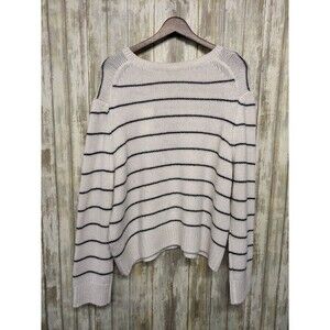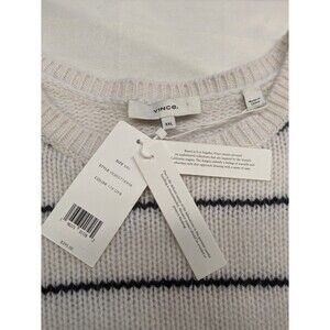 Vince 100% Cashmere Striped Crewneck Women's Knit Sweater White XXL NWT $395