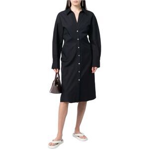 Vince 100% Cotton Shirt Dress XS Black Button Front Long Sleeve Minimalist
