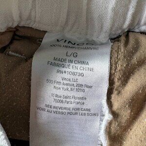 100% Hemp shorts from Vince. These wear a lot like Linen but with less wrinkling. Great casual almost boxer style shorts. Not too sheer. The pockets are a tan/skin tone so you don't see the outline of them when wearing. Wash easily and are great for everyday wear. In perfect used condition, only showing signs of wear on the inside (Tag is fraying and pockets are pilling a bit). I purchased them from Nordstrom Rack and no longer fit in them. Loved them so much I purchased a new pair on Poshmark in my new size!