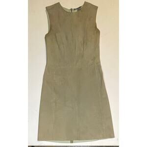 Gorgeous Vince sleeveless shift dress in a muted sage green, crafted from 100% genuine lamb leather. This luxury piece is fully lined, features a back zip, and best of all—hidden pockets for effortless function. In excellent condition, this is a rare investment dress that blends timeless minimalism with everyday wearability.
