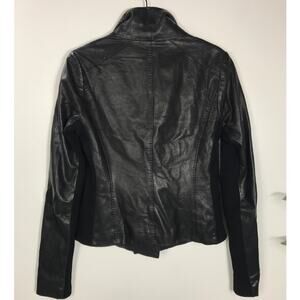 Vince. 100% Leather Zip Jacket Edgy Cross Front Scuba Knit Clean Girl Classic