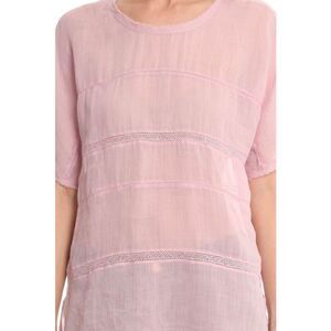 Made of lightweight ramie, a soft natural fiber like linen that is better at resisting wrinkles, this boxy silhouette is paired with lace inserts for feminine contrast.