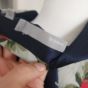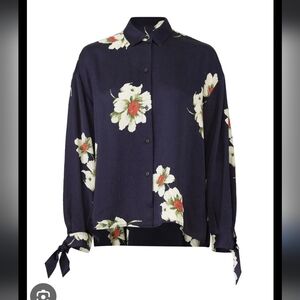Hammered 100% silk blouse from Vince size Sm- gorgeous button tie sleeves so they do not become undone if you want to make them into bows- or let them hang- off the shoulder style with very modern lines in the back- the pop of red in the flowers is gorgeous