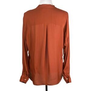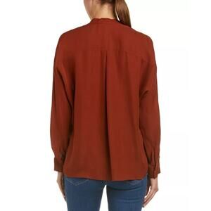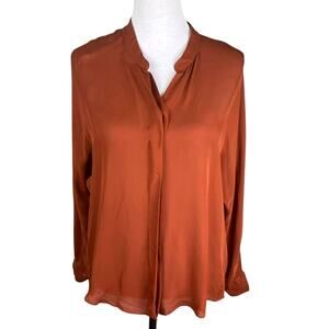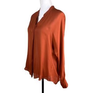 Vince 100% Silk Cinnamon Brown Long Sleeve Covered Button Up Collarless Blouse