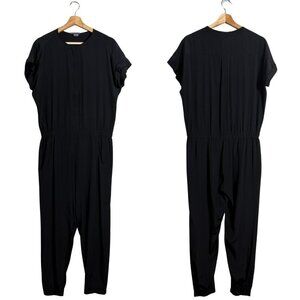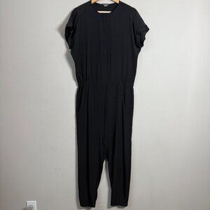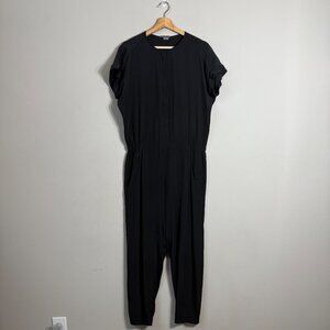 Vince 100% Silk Jogger Jumpsuit Women's 4 Black Designer Minimalist Neutral Chic