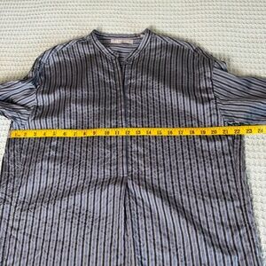 Vince women’s popover tunic. Size small. Grayish blue base with dark blue/gray stripes. In excellent condition.