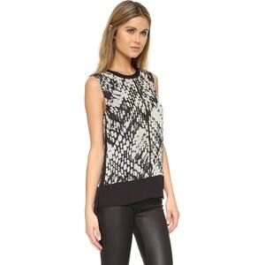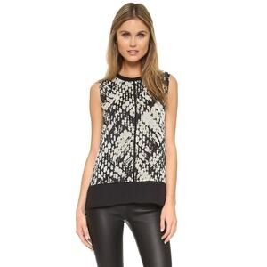 Vince 100% silk Basketweave Print Double Layer Shell Top in Macadamia & Black L
