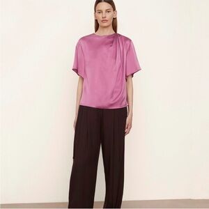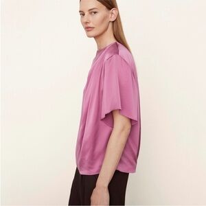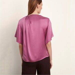 Vince 100% silk pink Flutter-Sleeve Draped-Neck Blouse NEW
