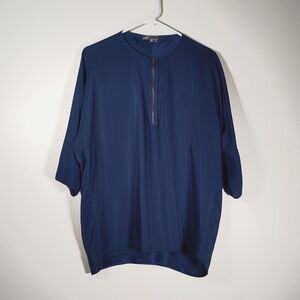 Vince 100% silk zip front 3/4 sleeve blouse top marine blue XS