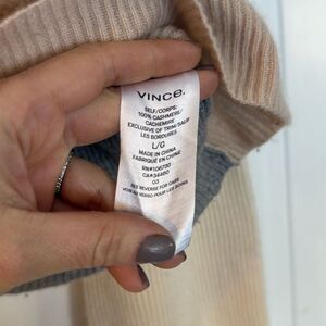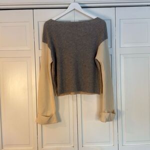 Vince 100% cashmere cream tan and grey colorblock neck sweater large