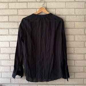 Elevate your wardrobe with this sophisticated black textured blouse that effortlessly combines comfort and style. Featuring a flattering V-neckline with a partial button-front closure, this versatile piece is perfect for both professional and casual settings.