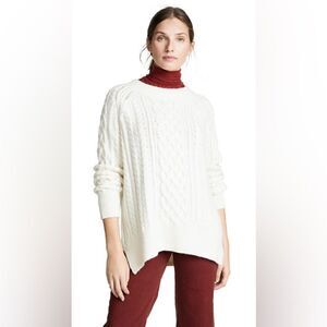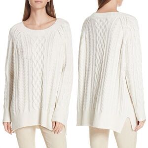 Vince $425 Cable-knit Wool-blend Tunic Sweater In White/Ivory
