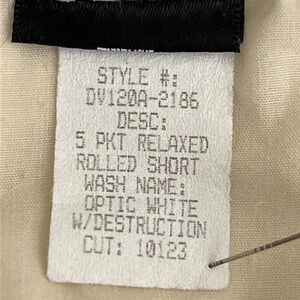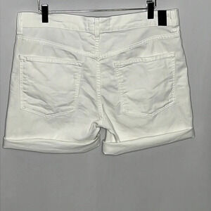 Vince 5 Pocket Relaxed Rolled Denim Shorts in Optic White - Size 31. Excellent pre-owned condition. Tiny bit of scratching in the white paint on the closure button. Zip fly with button closure, stretch, 5 pockets, minimal factory distressing, roll ups are not secured, relaxed fit. Approximate measurements: 18" waist, 10 1/2" rise, 7" inseam (unrolled).