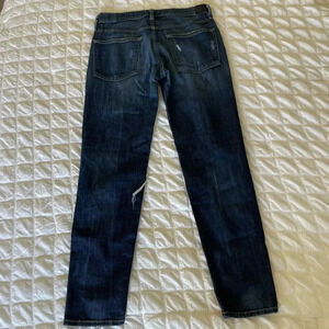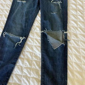 Vince 5 pocket relaxed rolled in destructed dark crimson distressed denim