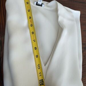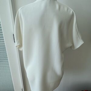 Size small off white vneck blouse. Very nice condition, not new but no visible signs of pulls or damage. The color is not bright white it’s a much warmer tone. Pit and length measurement shown