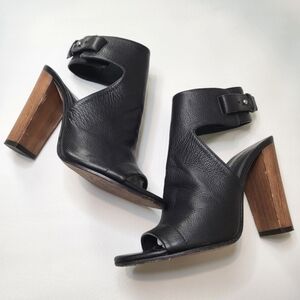 Vince women's shoes in black with brown wooden heel. Size 7.