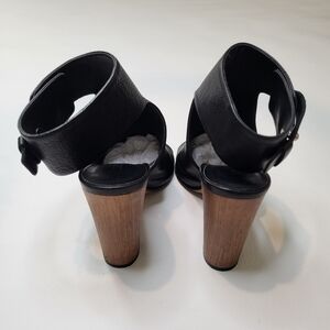 Vince Addie high heels black leather block chunky heel ankle strap shoes size 7