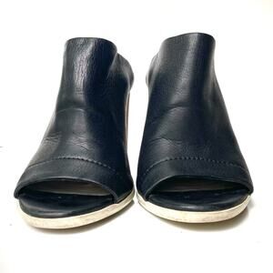 Vince Allison Black Leather Peep Toe Mules 36 | Sculptural Block Heel Slides