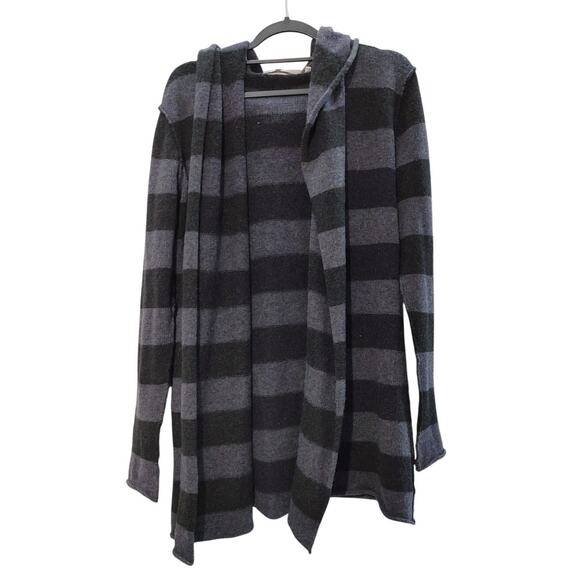Vince Alpaca Cashmere Wool Sweater Cardigan Black Gray Striped Womens Large