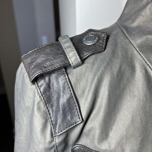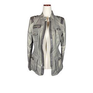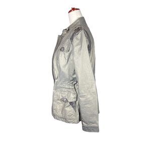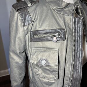 Vince Army Green Gray Waxed Cotton Leather Trim Utility Jacket Size Sm Epaulette