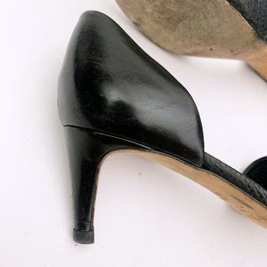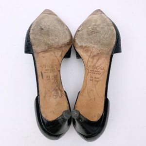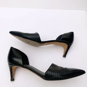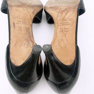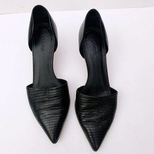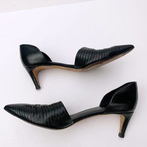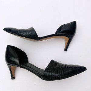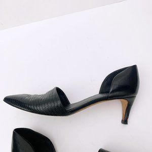 Vince leather pump with snake-embossed vamp.