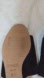 Black suede slides with open toe and back. Small notch in inner part with elastic insert to provide stretch. Soles as shown with a bit of clear tape on left shoe but no major wear.